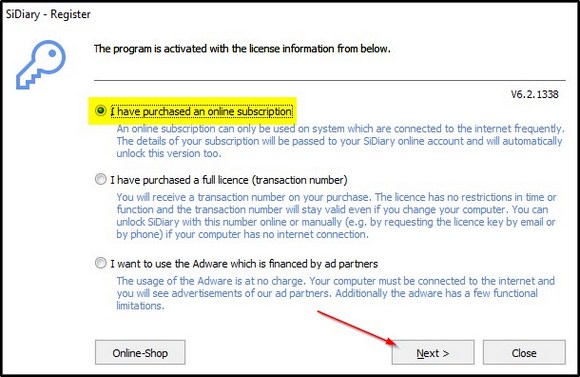 Please note, that you need to have an internet access in order to register with your subscription license!