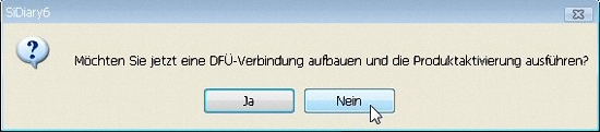 Auch in diesem Fall versucht SiDiary zunächst eine Internetverbindung aufzubauen und bringt nach ein paar Sekunden die folgende Fehlermeldung, bei der Sie auf 'Nein' klicken können: