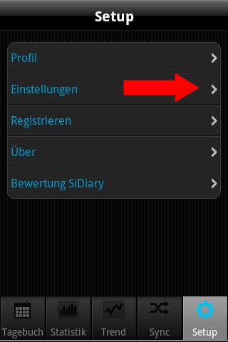 In der Android-App klicken Sie bitte unten auf 'Setup >>Einstellungen >>Synchronisation'