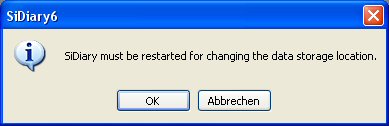 In the Data storage location you can define where SiDiary stores your data. After clicking on Data storage location you will see this notice: