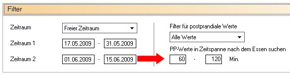 Nur eine Blutzuckermessung innerhalb dieses Intervalls wird bei der postprandialen Auswertung